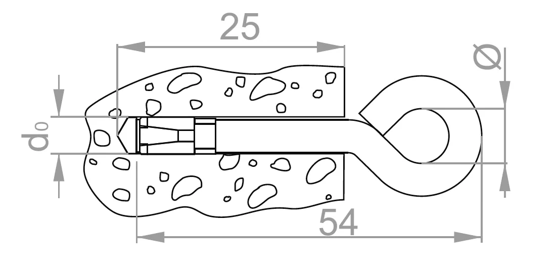 Монтажна конструкція, підвішування кабельних трас до бетонної основи. Матеріал G - оцинкований Додаткова інформація – d0 – діаметр свердла