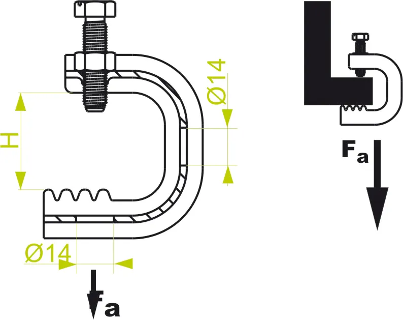 - (Діаметр) O 14 мм різьбового стрижня або гачків