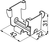 Безгвинтове з'єднання сітчастих лотків KDS50H35/3 та KSG50H35/3. Матеріал G - оцинкований Доступні варіанти виконання: FP - оцинкований за методом цинкових пластівців PN-EN ISO 10683:2018-11 E - нержавіюча сталь L - фарбування в стандартний колір RAL
