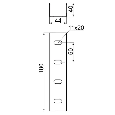 З'єднання каналів. Матеріал MC - сталь з покриттям Mangelis® Додаткова інформація – використовуйте болти SGKFM10x20 або SGFM10x20 для з'єднання профіля з роз'ємом