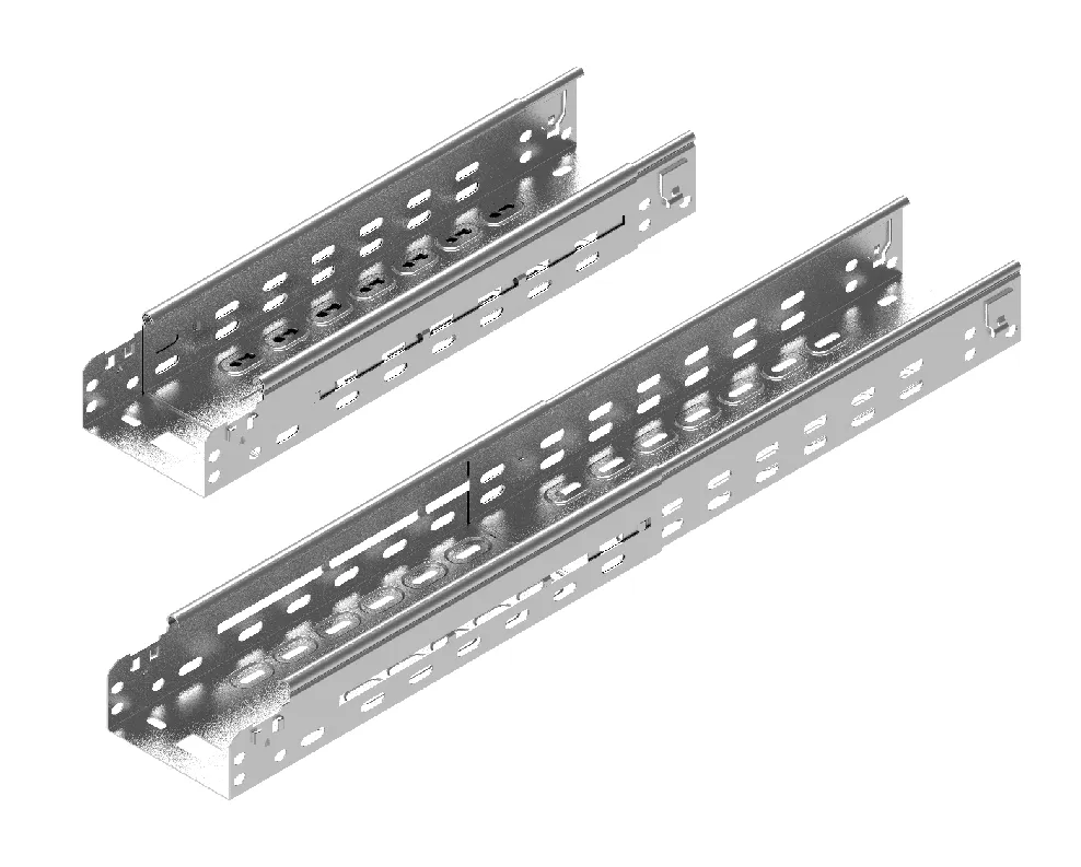 Безгвинтові з'єднання на двох кінцях кабельної траси. Можливість плавного регулювання викиду дозволяє регулювати довжину з'єднувача, позбавляючи від необхідності розрізати лоток