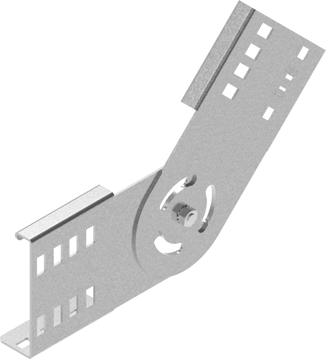 З'єднання кабельних драбин, прокладених під різними кутами. Повне регулювання кута з фіксацією. Матеріал S - Сталь, оцинкована методом Сендзіміра PN-EN 10346:2015-09 Доступні варіанти оздоблення: F - гарячеоцинкована сталь PN-EN ISO 1461:2023-02 E - нержавіюча сталь L - фарбування у стандартний колір RAL Додаткова інформація Для складання використовуйте 8 комплектів гвинтів SGKM8x14 або SGM8x14