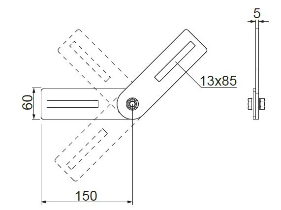 З'єднання DPH... двотаврових балок під різними кутами. Матеріал F - гарячеоцинкована сталь PN-EN ISO 1461:2023-02 Доступні варіанти оздоблення: L - фарбування у стандартний колір RAL Додаткова інформація – для кріплення пропонуємо 2 комплекти болтів SGFM12x30