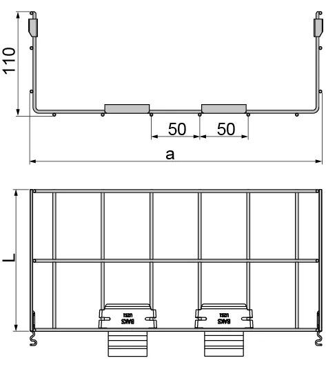 Безгвинтове подовження кабельної траси. Матеріал G - оцинкований Доступні варіанти оздоблення: F - гарячеоцинкована сталь PN-EN ISO 1461:2023-02 L - фарбування у стандартний колір RAL