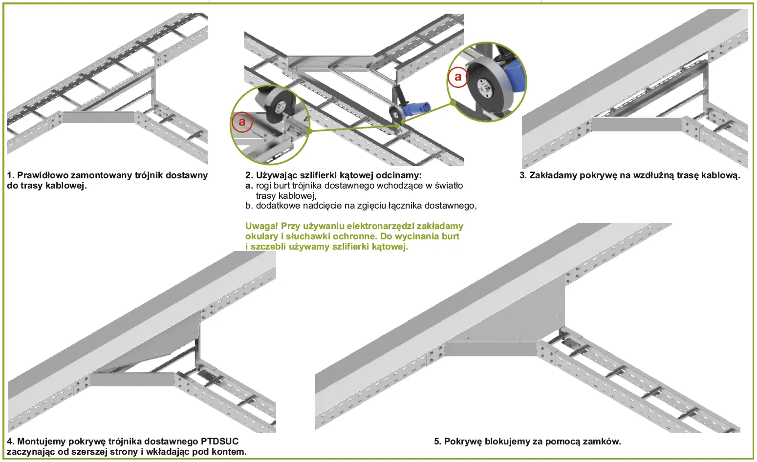 Захист кабелів від пошкоджень. Використання в запилених місцях. Матеріал MC - сталь з покриттям Mangelis® Додаткова інформація - Систему покриття Magnelis можна доповнити гарячим цинкуванням або виробами з нержавіючої сталі