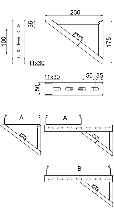– настінний кронштейн призначений для зазначеної ширини кабельної траси (A)