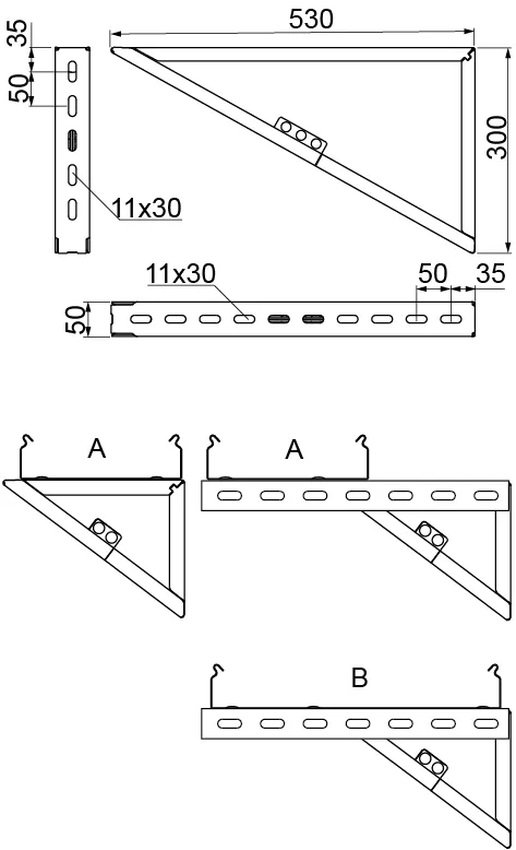 – настінний кронштейн призначений для зазначеної ширини кабельної траси (A)