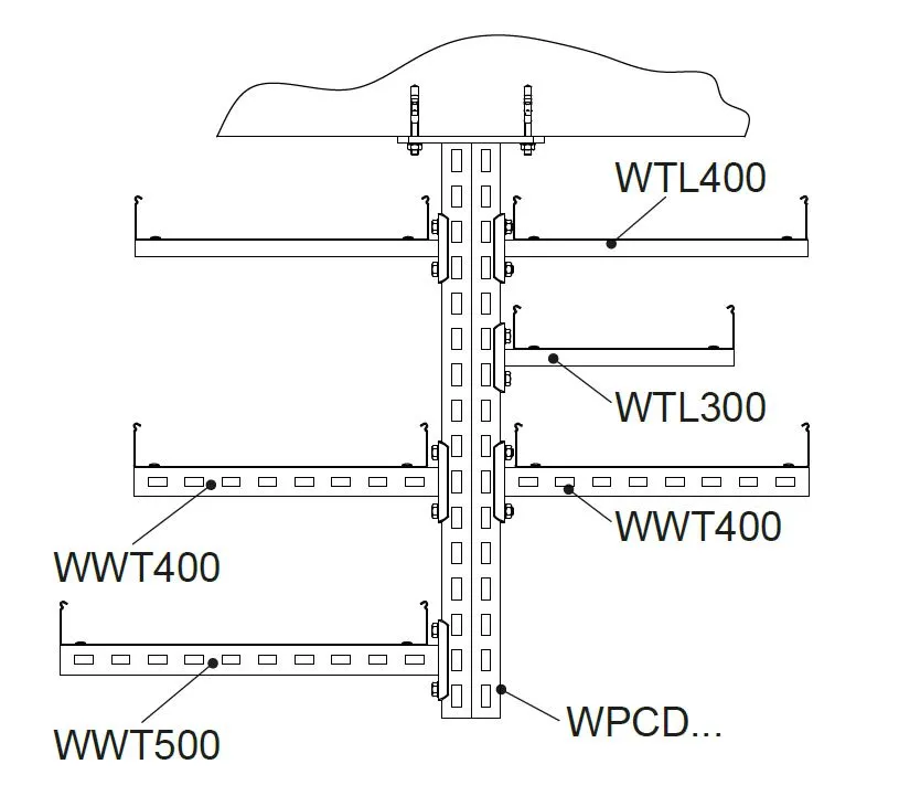 – для кріплення настінних кронштейнів до відкритої сторони опорного кронштейна рекомендується використовувати пластини швелера PZC40 або PZC100