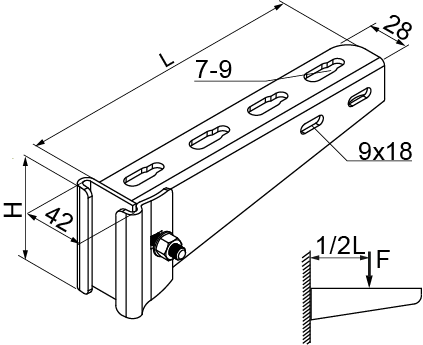 Кріплення лотків, кабельних драбин, труб та інших елементів з дуже великими навантаженнями до двотаврових балок. Матеріал F - гарячеоцинкована сталь PN-EN ISO 1461:2023-02 Доступні варіанти оздоблення: L - фарбування у стандартний колір RAL
