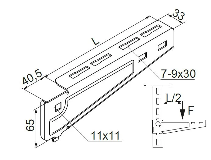 Підвішування кабельних трас. Настінний кронштейн для монтажу на опорних кронштейнах WPCB... та WPCW/WPCO... Матеріал S - Сталь, оцинкована методом Сендзіміра PN-EN 10346:2015-09 Доступні варіанти оздоблення: F - гарячеоцинкована сталь PN-EN ISO 1461:2023-02 E - нержавіюча сталь L - фарбування у стандартний колір RAL