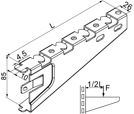 – безгвинтове кріплення до кронштейнів BAKS та профілів C..., CW... та CM... з отворами шириною 11-13 та довжиною 30-35 мм