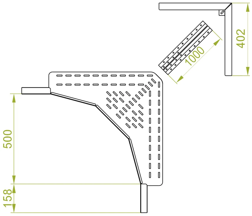 – для з’єднання двох лотків за допомогою з’єднувача необхідно використовувати SGKM8x16 або SGNM8x16 та SGKM6x16 або