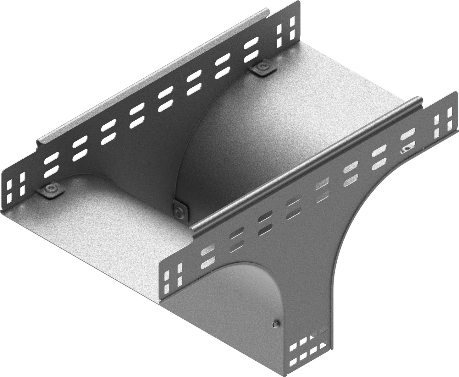 Розгалуження кабельної траси. Матеріал S - оцинкована за методом Сендзіміра сталь PN-EN 10346:2015-09 Доступні покриття: F - гаряче оцинкована сталь PN-EN ISO 1461:2023-02 E - нержавіюча сталь L - фарбування в стандартний колір RAL Додаткова інформація – безгвинтове кріплення