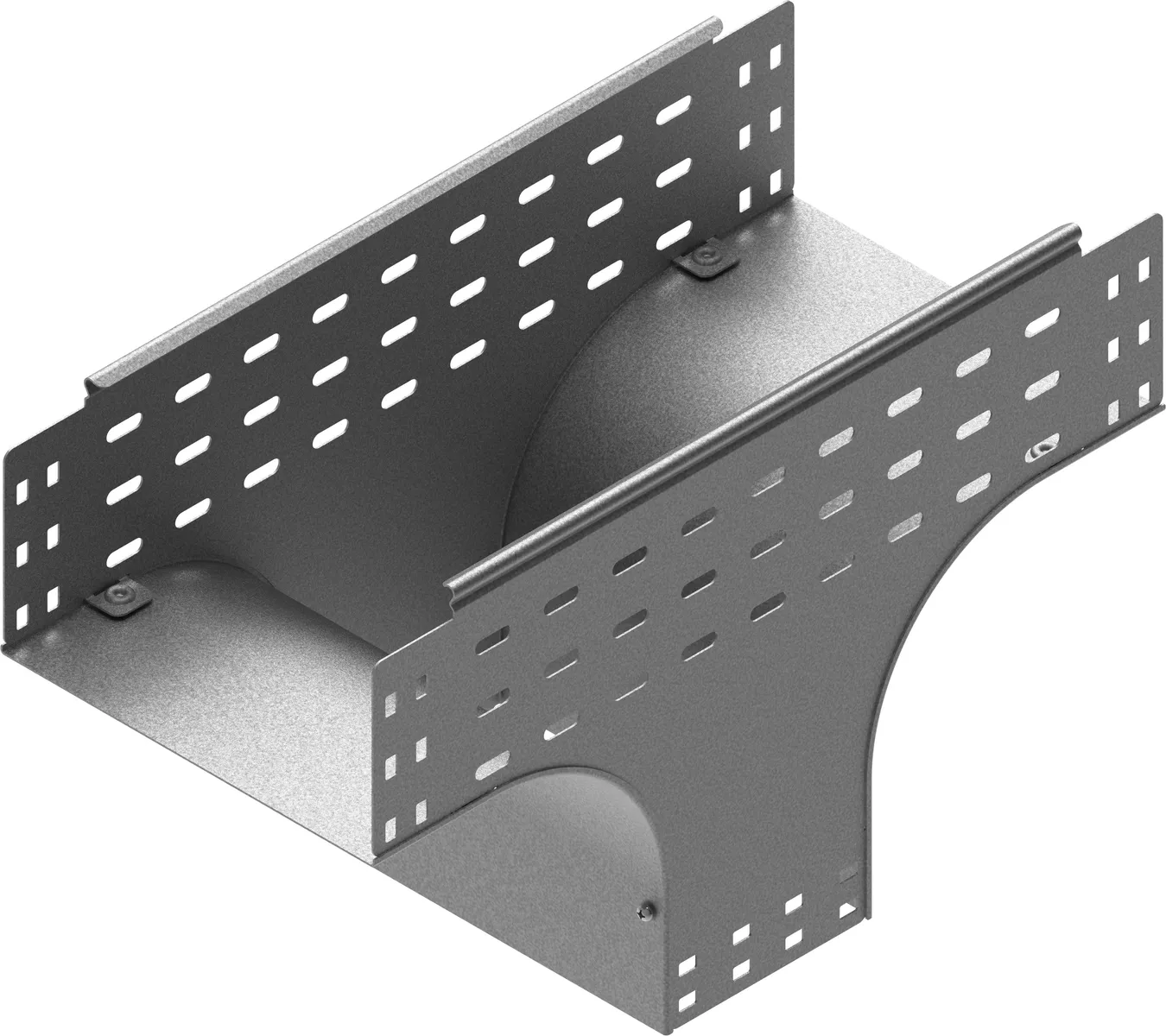 Розгалуження кабельної траси. Матеріал S - оцинкована за методом Сендзіміра сталь PN-EN 10346:2015-09 Доступні покриття: F - гаряче оцинкована сталь PN-EN ISO 1461:2023-02 E - нержавіюча сталь L - фарбування в стандартний колір RAL Додаткова інформація – кріплення за допомогою болтів SGKM6x12 або SGM6x12