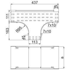 Розгалуження кабельної траси. Матеріал S - оцинкована за методом Сендзіміра сталь PN-EN 10346:2015-09 Доступні покриття: F - гаряче оцинкована сталь PN-EN ISO 1461:2023-02 E - нержавіюча сталь L - фарбування в стандартний колір RAL Додаткова інформація – кріплення за допомогою болтів SGKM6x12 або SGM6x12