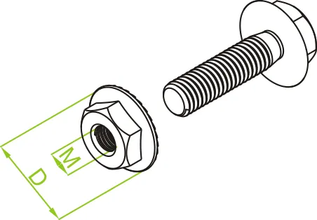 Підключення компонентів системи. Матеріал G - оцинкований Доступні варіанти оздоблення: E - нержавіюча сталь Додаткова інформація – Болт класу міцності 5.8 – розмір згідно з DIN 6921