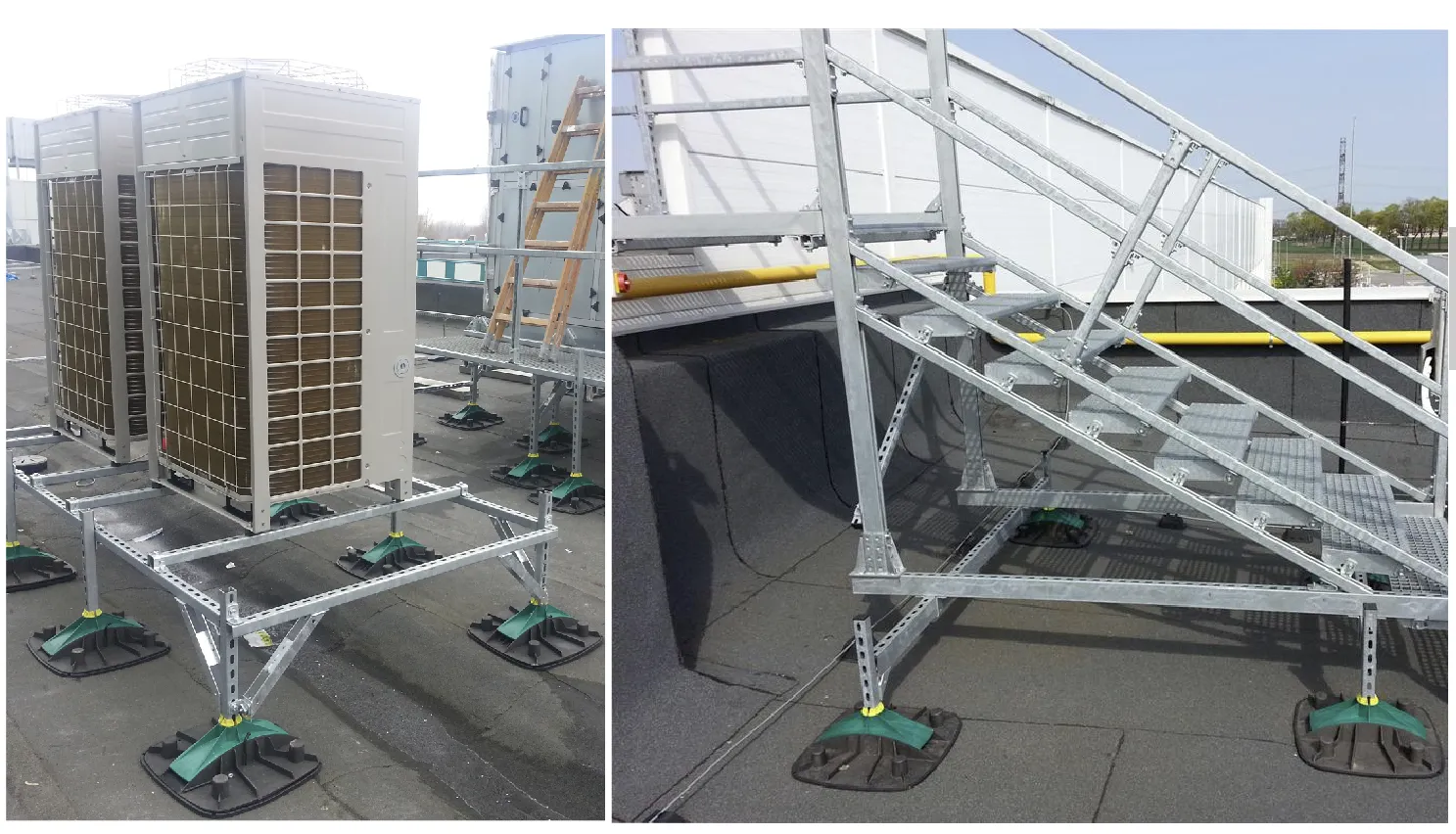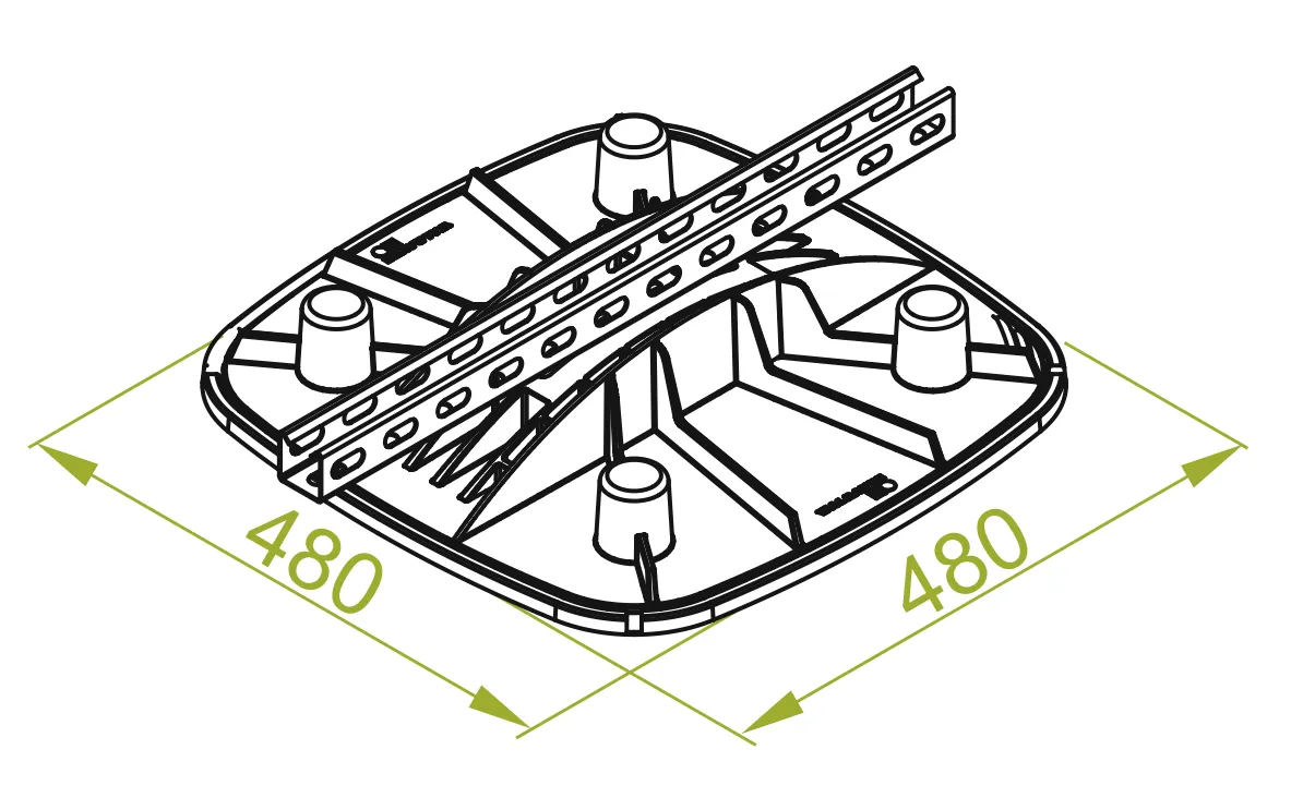 Модульна опорна система для прокладання кабельних трас, обладнання для кондиціонування повітря, труб, чилерів, доріжок, сонячних панелей, фотоелектричних панелей тощо на дахах. Монтаж на плоских та злегка похилих дахах. Система підходить для опорних профілів 40H40 або 41H41.
