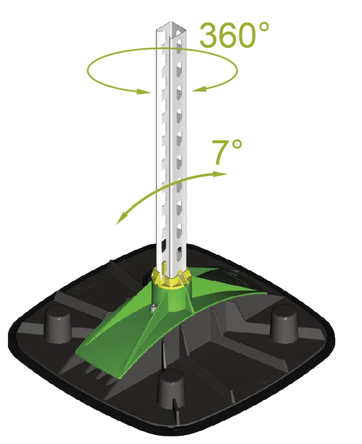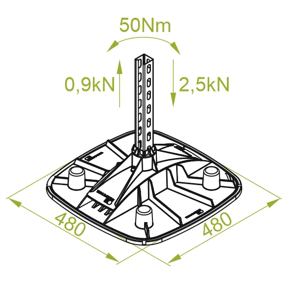 Модульна опорна система для прокладання кабельних трас, обладнання для кондиціонування повітря, труб, чилерів, доріжок, сонячних панелей, фотоелектричних панелей тощо на дахах. Монтаж на плоских та злегка похилих дахах. Система підходить для опорних профілів 40H40 або 41H41.
