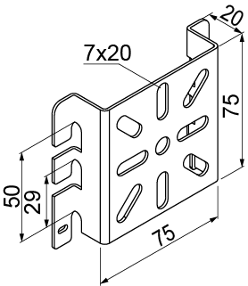 Ремонт електричних коробок та розеток до кабельних лотків з дротяної сітки. Матеріал G - оцинкований Доступні варіанти оздоблення: FP - оцинкований методом цинкової стружки PN-EN ISO 10683:2018-11 E - нержавіюча сталь L - фарбування у стандартний колір RAL