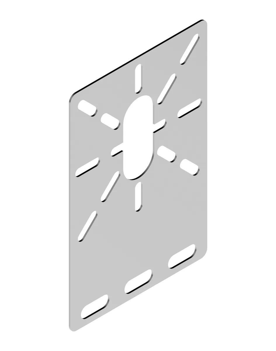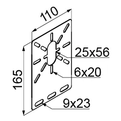 Фіксація коробок для аксесуарів до кабельних лотків і драбин, а також до канальних профілів Матеріал S - оцинкована за методом Сендзіміра сталь PN-EN 10346:2015-09 Доступні покриття: F - гарячеоцинкована сталь PN-EN ISO 1461:2023-02 E - нержавіюча сталь L - фарбування в стандартний колір RAL