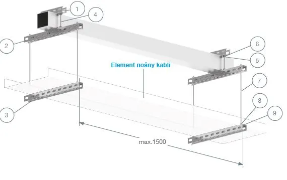 Макс. Безпечне навантаження 20 кг/м на 2 кабельні лотки