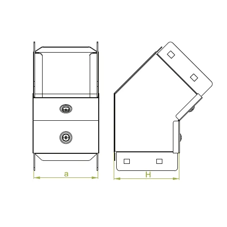 Відхилення в кабельній трасі. Матеріал Сталь, оцинкована стрічка згідно з Сендзіміром метод PN-EN 10346:2015-09 (SG) Доступні варіанти оздоблення: F - сталь, гарячеоцинкована PN-EN ISO 1461:2011 (HDG) E - Сталь, гарячеоцинкована згідно з PN-EN 10088,
