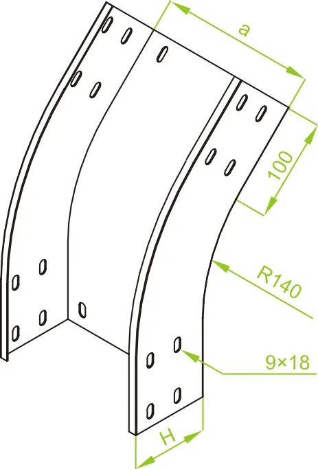 Відхилення під час прокладання кабелю. Матеріал F - гарячеоцинкована сталь PN-EN ISO 1461:2023-02 Доступні варіанти оздоблення: E - нержавіюча сталь L - фарбування у стандартний колір RAL Додаткова інформація Для з'єднання фітингів з кабельними лотками використовуйте прямі з'єднувачі LZC... та комплекти гвинтів SGKFM8x14 або SGFM8x14