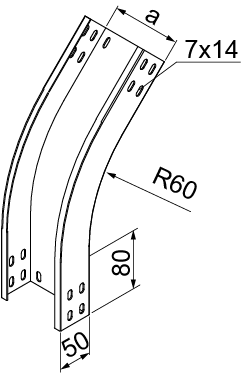 Зміна напрямку кабельної траси. Матеріал F - гарячеоцинкована сталь PN-EN ISO 1461:2023-02 Доступні варіанти оздоблення: E - нержавіюча сталь L - фарбування у стандартний колір RAL Додаткова інформація – для підключення фітинга до лотка використовуйте з'єднувач LCC... або комплект з'єднувачів LZC... та болти SGKFM6x12 або SGFM6x12