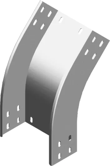 Відхилення під час прокладання кабелю. Матеріал F - гарячеоцинкована сталь PN-EN ISO 1461:2023-02 Доступні варіанти оздоблення: E - нержавіюча сталь L - фарбування у стандартний колір RAL Додаткова інформація Для з'єднання фітингів з кабельними лотками використовуйте прямі з'єднувачі LZC... та комплекти гвинтів SGKFM8x14 або SGFM8x14