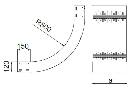 Зміна напрямку кабельної траси. Матеріал S - Сталь, оцинкована методом Сендзіміра PN-EN 10346:2015-09 Доступні варіанти оздоблення: F - гарячеоцинкована сталь PN-EN ISO 1461:2023-02 E - нержавіюча сталь L - фарбування у стандартний колір RAL Додаткова інформація – для з’єднання фітинга з лотком необхідно використовувати з’єднувачі фітингів LSSU... та болти SGKM8x16