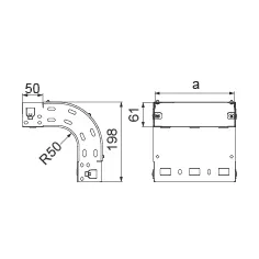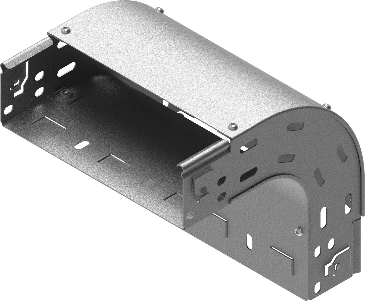 Зміна напрямку прокладки кабелю. Матеріал S - оцинкована за методом Сендзіміра сталь PN-EN 10346:2015-09 Доступні варіанти обробки: L - фарбування в стандартний колір RAL Додаткова інформація – безгвинтове кріплення