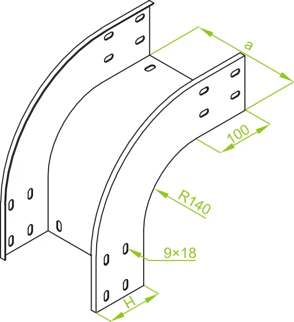 Відхилення під час прокладання кабелю. Матеріал F - гарячеоцинкована сталь PN-EN ISO 1461:2023-02 Доступні варіанти оздоблення: E - нержавіюча сталь L - фарбування у стандартний колір RAL Додаткова інформація Для з'єднання фітингів з кабельними лотками використовуйте прямі з'єднувачі LZC... та комплекти гвинтів SGKFM8x14 або SGFM8x14