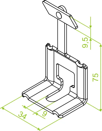 Використовується як елемент для підвішування кабельних трас з низьким навантаженням за допомогою різьбових стрижнів. Матеріал S - Сталь, оцинкована методом Сендзіміра PN-EN 10346:2015-09 Доступні варіанти оздоблення: FP - оцинкований методом цинкової стружки PN-EN ISO 10683:2018-11 E - нержавіюча сталь L - фарбування у стандартний колір RAL Додаткова інформація – для кріплення просвердліть отвір діаметром 10 мм
