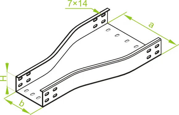 Зміна ширини кабельної траси. Матеріал F - гарячеоцинкована сталь PN-EN ISO 1461:2023-02 Доступні варіанти оздоблення: E - нержавіюча сталь L - фарбування у стандартний колір RAL Додаткова інформація – для підключення фітинга до лотка використовуйте з'єднувач LCC... або комплект з'єднувачів LZC... та болти SGKFM6x12 або SGFM6x12