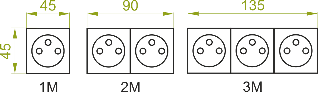 Стандартний розмір одного модуля 45 x 45 мм