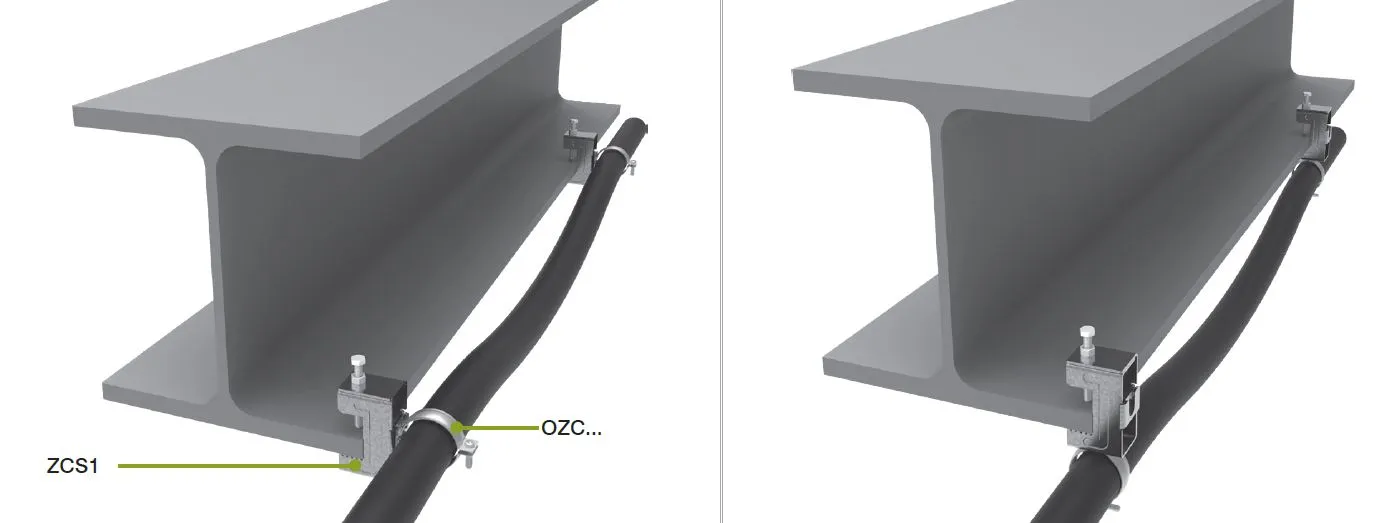 Фіксація кабелів до затискачів ZCS1 та ZCS2.