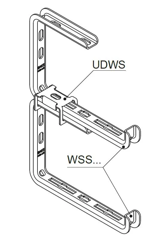З'єднання кронштейнів WSS... з горизонтальною частиною, утворюючи дворівневу стропу. Матеріал S - Сталь, оцинкована методом Сендзіміра PN-EN 10346:2015-09 Доступні варіанти оздоблення: FP - оцинкований методом цинкової стружки PN-EN ISO 10683:2018-11 E - нержавіюча сталь L - фарбування у стандартний колір RAL Додаткова інформація – розташування в таблиці: 2, 3, 4