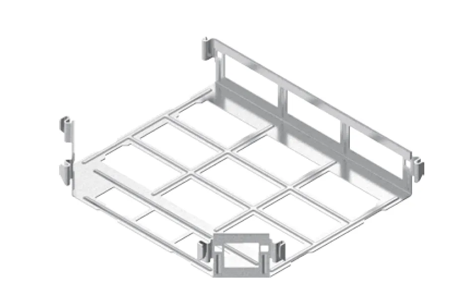 Розгалуження кабельної траси. Матеріал S - Сталь, оцинкована методом Сендзіміра PN-EN 10346:2015-09 Доступні варіанти оздоблення: F - гарячеоцинкована сталь PN-EN ISO 1461:2023-02 E - нержавіюча сталь L - фарбування у стандартний колір RAL