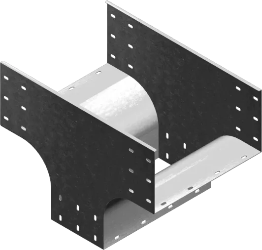 Розгалуження кабельної траси. Матеріал F - гарячеоцинкована сталь PN-EN ISO 1461:2023-02 Доступні варіанти оздоблення: E - нержавіюча сталь L - фарбування у стандартний колір RAL Додаткова інформація – для підключення фітинга до лотка використовуйте з'єднувач LCC... або комплект з'єднувачів LZC... та болти SGKFM8x14 або SGFM8x14