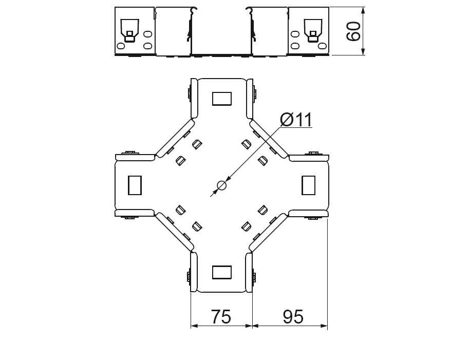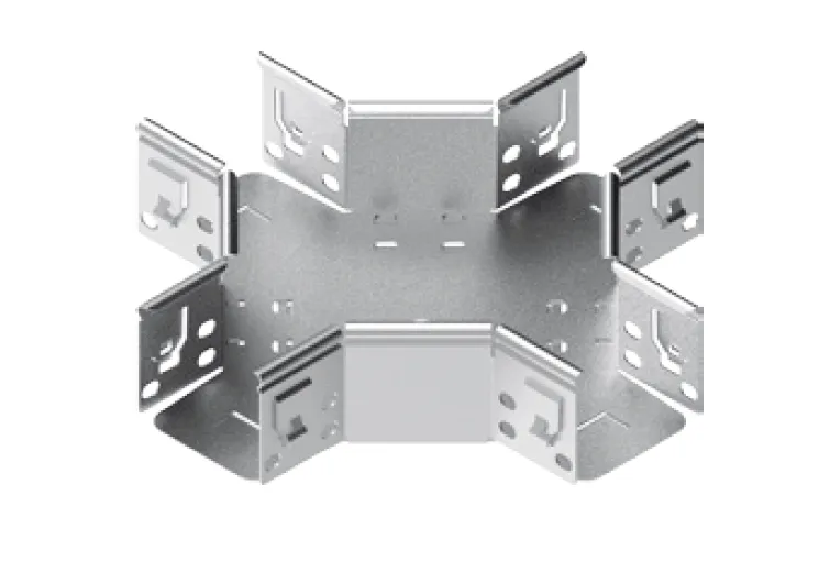 Розгалуження кабельної траси. Матеріал S - Сталь, оцинкована методом Сендзіміра PN-EN 10346:2015-09 Доступні варіанти оздоблення: F - гарячеоцинкована сталь PN-EN ISO 1461:2023-02 E - нержавіюча сталь Додаткова інформація – кришки для арматури доступні на запит Примітка Інтегровані з'єднувачі. Збірка без додаткових з'єднувачів.