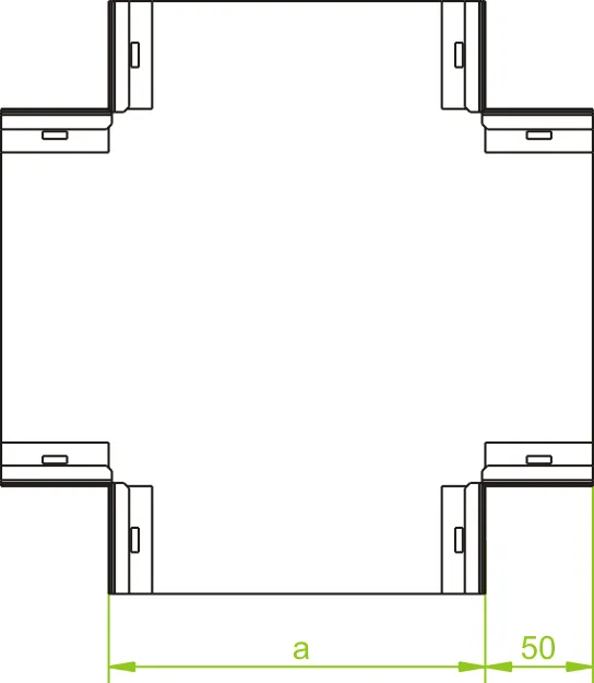 Розгалуження кабельних трас. Матеріал S - Сталь, оцинкована методом Сендзіміра PN-EN 10346:2015-09 Доступні варіанти оздоблення: E - нержавіюча сталь