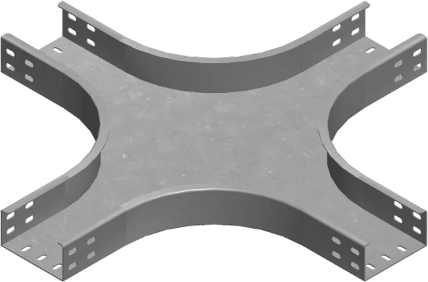 Розгалуження кабельної траси. Матеріал F - гарячеоцинкована сталь PN-EN ISO 1461:2023-02 Доступні варіанти оздоблення: E - нержавіюча сталь L - фарбування у стандартний колір RAL Додаткова інформація – для підключення фітинга до лотка використовуйте з'єднувач LCC... або комплект з'єднувачів LZC... та болти SGKFM6x12 або SGFM6x12