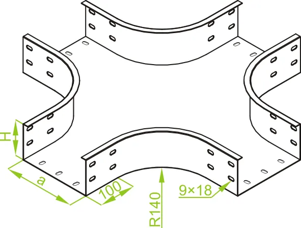 Розгалуження будь-яких існуючих кабельних трас. Матеріал F - гарячеоцинкована сталь PN-EN ISO 1461:2023-02 Доступні варіанти оздоблення: E - нержавіюча сталь L - фарбування у стандартний колір RAL Додаткова інформація Для з'єднання фітингів з кабельними лотками використовуйте прямі з'єднувачі LZC... та комплекти гвинтів SGKFM8x14 або SGFM8x14